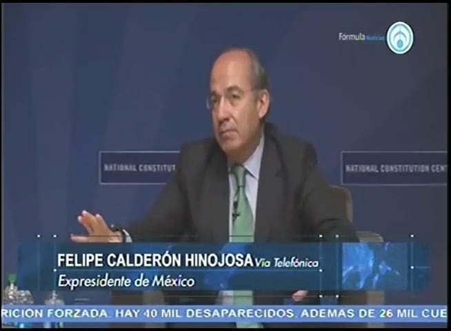 “Yo luché contra el crimen organizado y no me arrepiento de eso porque en México se está dando un proceso terrible de captura del estado, es decir, el crimen organizado está tomando el control del estado mismo a través de las instituciones de la seguridad y la justicia, está tomando el control de los policías, de los ministerios públicos, de los jueces, de los alcaldes, y de los gobernadores, y eso implica que el estado se está colapsando y los ciudadanos están en manos de los delincuentes. Yo dejé la presidencia con los homicidios a la baja y con instituciones públicas creciendo y fortaleciéndose.”